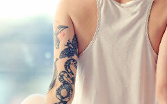 傷跡が残らないタトゥー除去Tatoo除去当院では、レーザーを使用しタトゥーの染料を熱によって破壊することでタトゥーを除去します。施術時間が短く、レーザー照射時の痛みが少ないのが特長です。黒などの濃い色の染料以外も除去が可能です。詳しくはお問い合わせください。- タトゥー